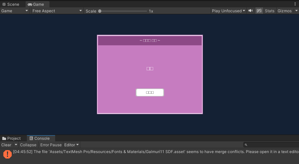 [유니티] 프로젝트 깃허브 머지 후 한글 깨짐, 흰 네모, 폰트 충돌 본문