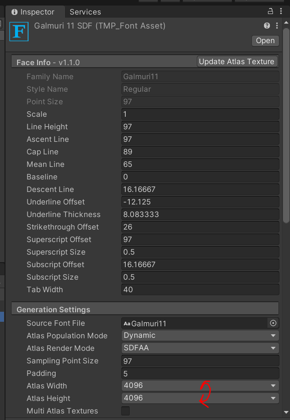 Atlas Width와 Atlas Height 값을 '바꿔주자.' 항상 값을 키울 필요는 없다. 나는 한번 줄여보겠다.