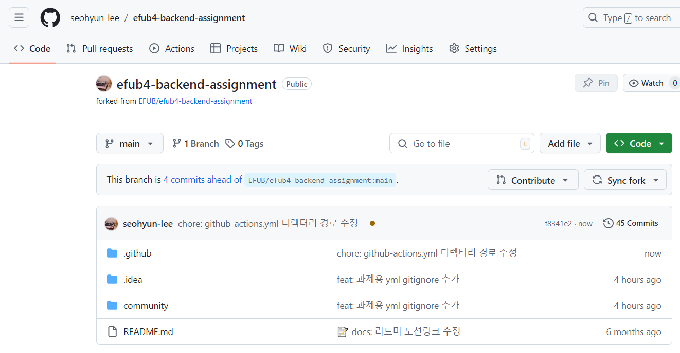 (아래의 워크플로우 코드는 디렉터리 구조가 아래 사진 처럼 생긴 사람만 쓰세요. 위에서 문제가 발생하지 않았다면 수정 필요 x)