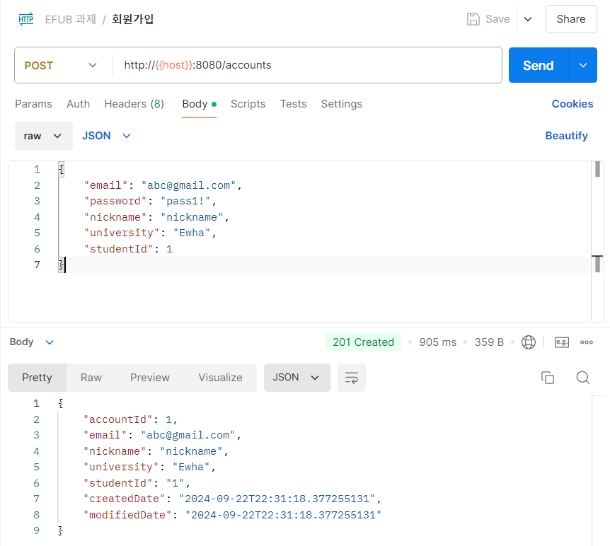 나는 회원가입 API 요청을 보내보겠다.