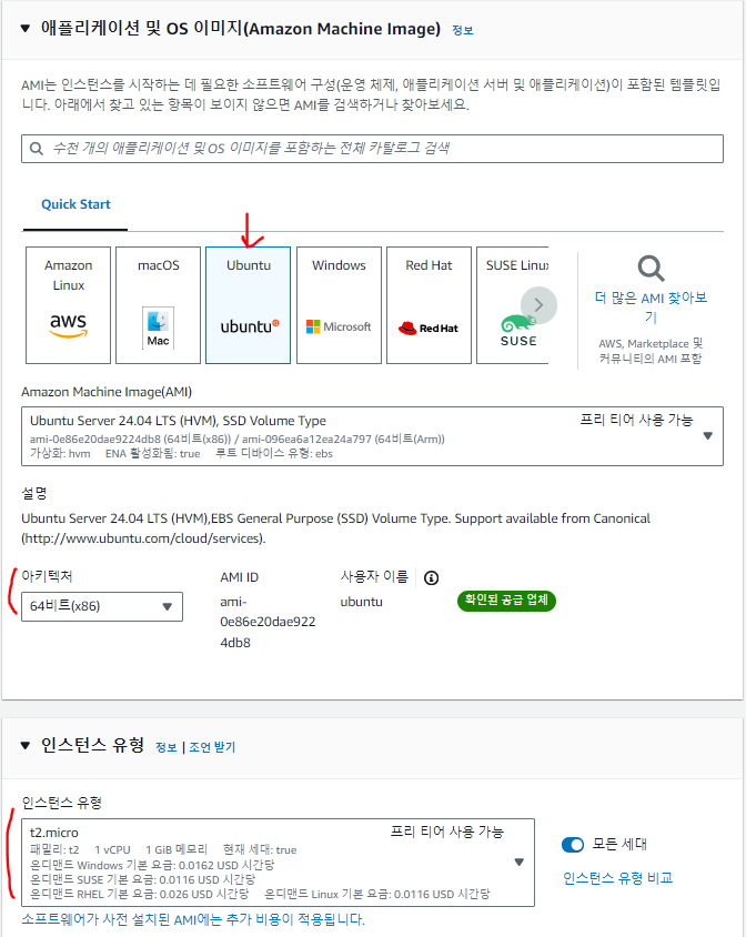 AWS EC2 (OS: Ubuntu 24.04 / 아키텍처: 64비트(x86))