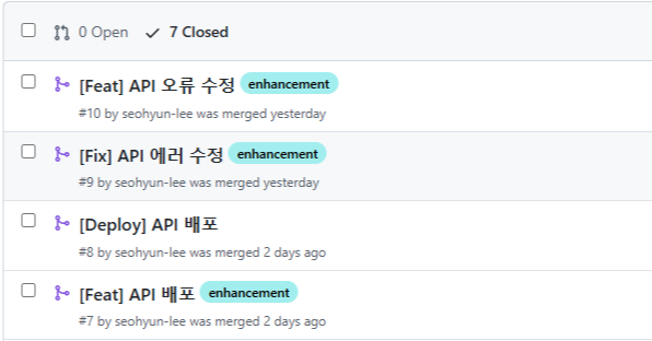 API 문서화에는 swagger를 사용했습니다.