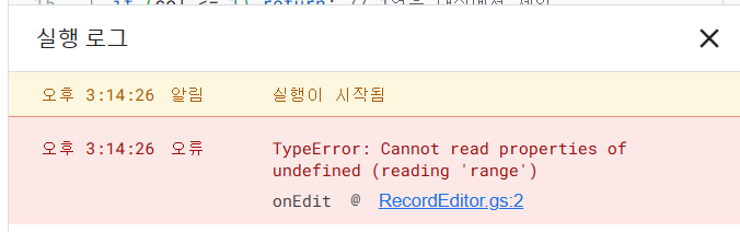 파일명 변경은 필수는 아니지만, 코드의 목적을 잘 기억하기 위해 RecordEditor.gs로 변경했다.