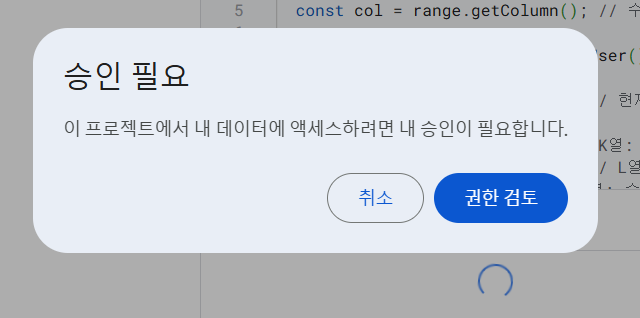 실행을 클릭하면 "승인 필요" 창이 뜨는데 "권한 검토"를 클릭해 허용해주자.