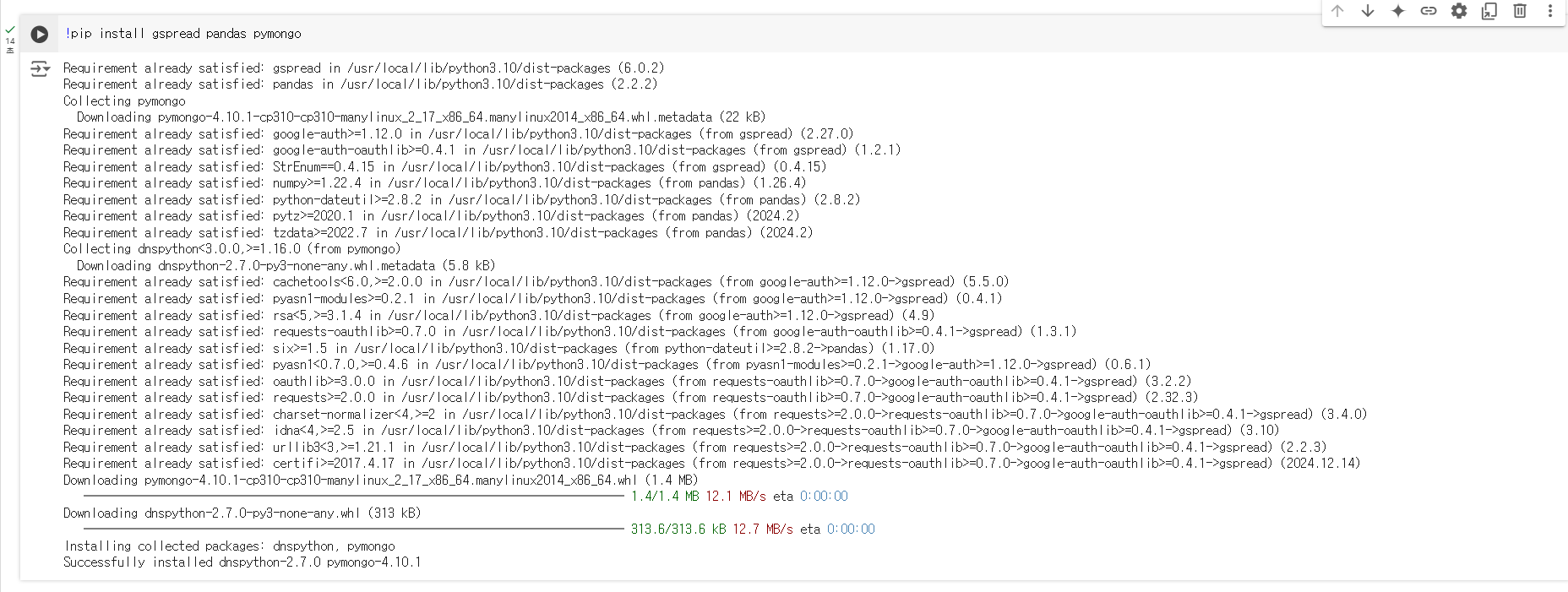 !pip install gspread pandas pymongo