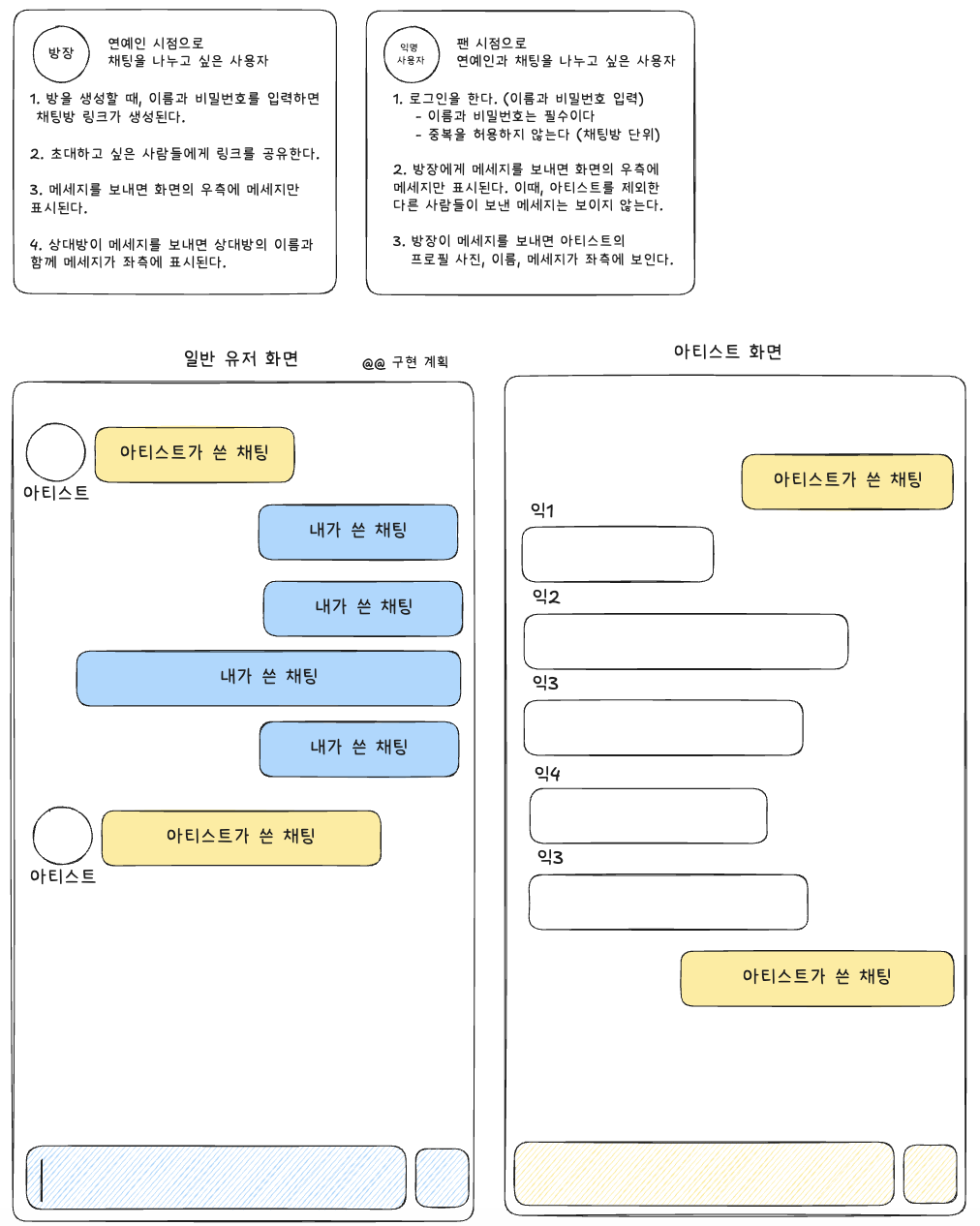 - 팬에게는 아티스트의 채팅과 자신의 채팅이 보인다.
