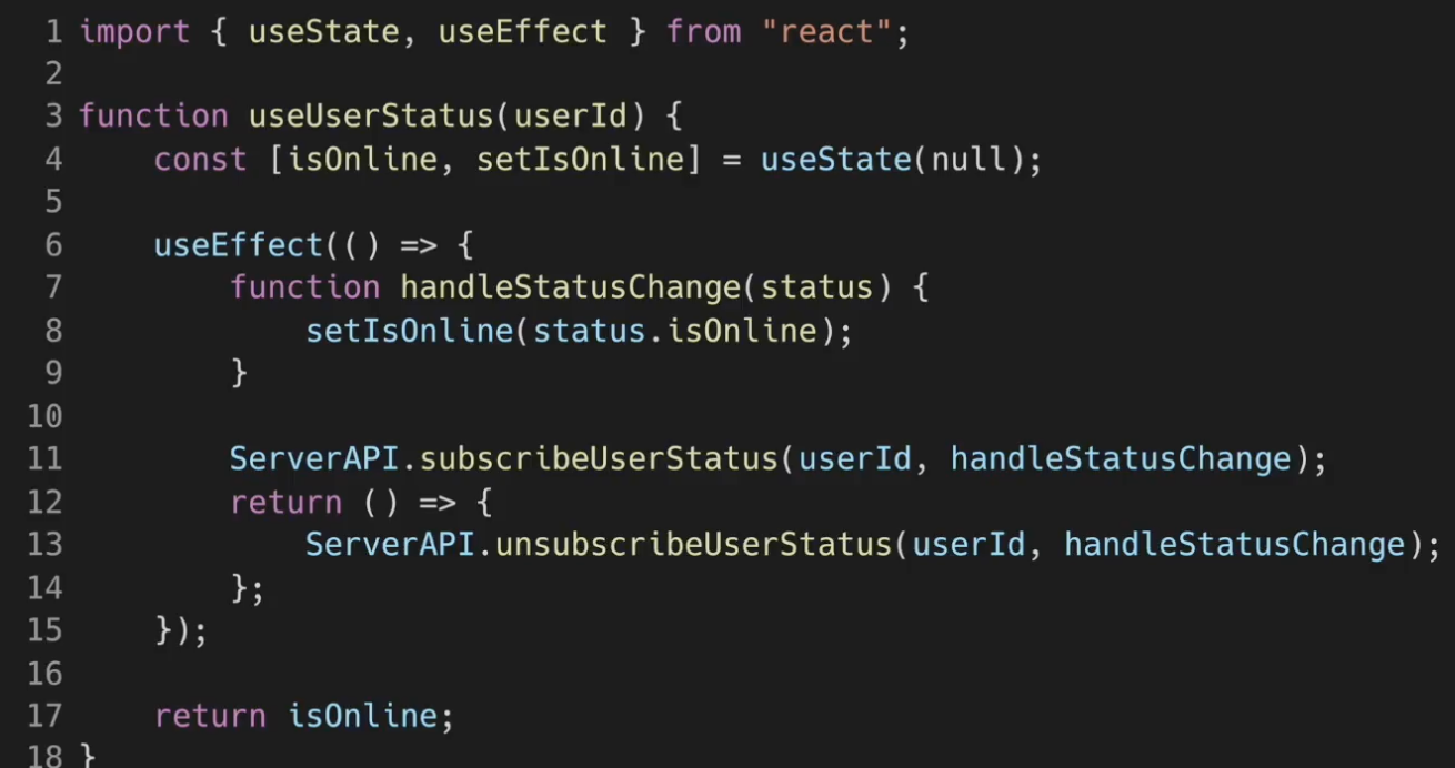- 여러개의 컴포넌트에서 하나의 Custom Hook을 사용할 때 컴포넌트 내부에 있는 모든 state와 effects는 전부 분리되어 있다.