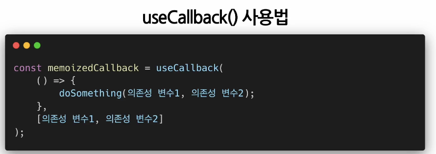 useCallback(): 매로 함수 새로 정의 X, 의존성 배열의 값이 바뀐 경우에만 함수 새로 정의해 리턴