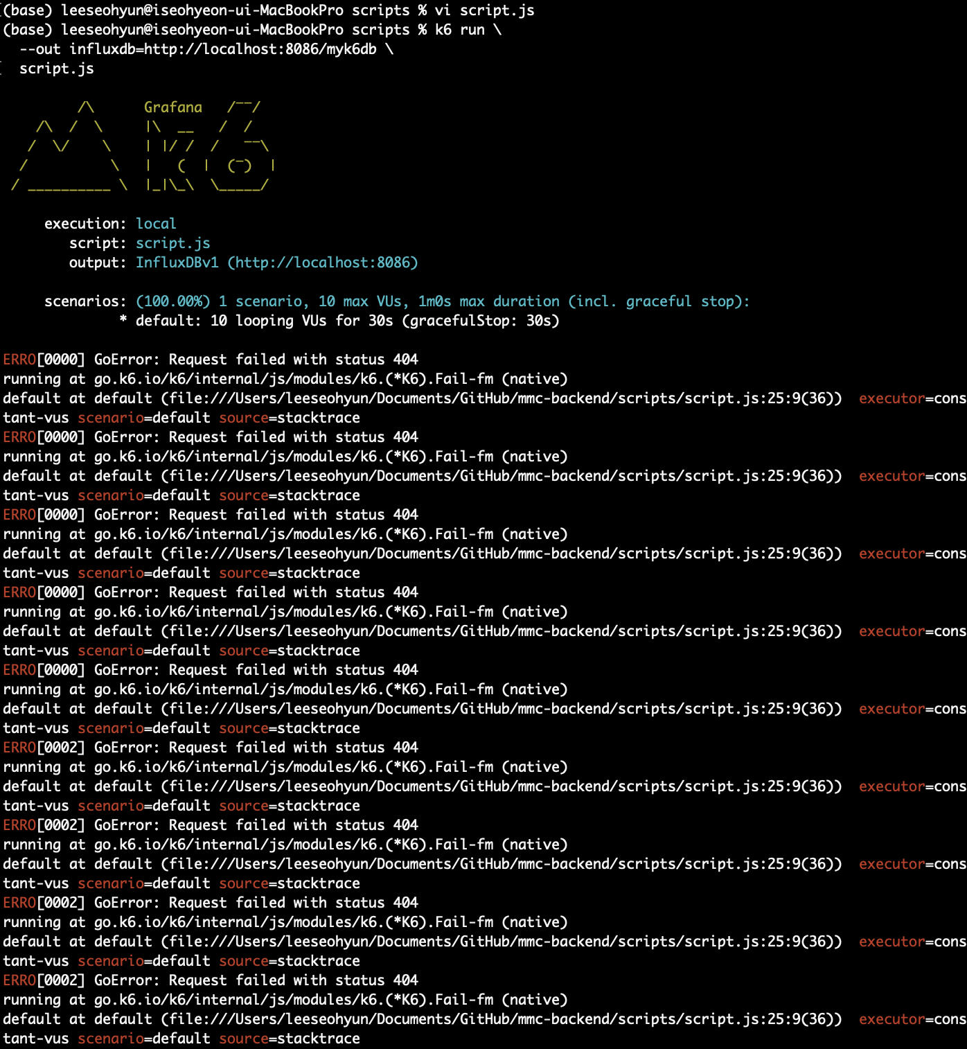 나는 Mac이어서 brew로 k6와 influxdb-cli를 설치했고