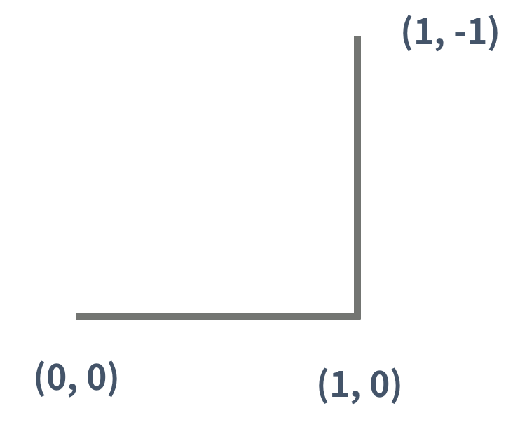 0세대 드래곤 커브는 길이가 1인 선분이다. 아래 그림은 (0, 0)에서 시작하고, 시작 방향은 오른쪽인 0세대 드래곤 커브이다.
