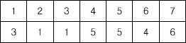 세로 두 줄, 가로로 N개의 칸으로 이루어진 표가 있다. 첫째 줄의 각 칸에는 정수 1, 2, …, N이 차례대로 들어 있고 둘째 줄의 각 칸에는 1이상 N이하인 정수가 들어 있다. 첫째 줄에서 숫자를 적절히 뽑으면, 그 뽑힌 정수들이 이루는 집합과, 뽑힌 정수들의 바로 밑의 둘째 줄에 들어있는 정수들이 이루는 집합이 일치한다. 이러한 조건을 만족시키도록 정수들을 뽑되, 최대로 많이 뽑는 방법을 찾는 프로그램을 작성하시오. 예를 들어, N=7인 경우 아래와 같이 표가 주어졌다고 하자.