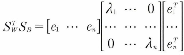 2. 클래스 내부 분산 행렬 SW, 클래스 간 분산 행렬을 SB라고 할 때 아래의 식으로 두 행렬을 고유벡터로 분해.