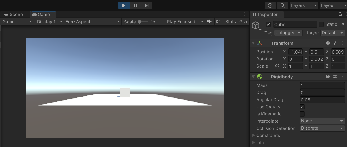 - Rigidbody 컴포넌트 : 오브젝트가 물리와 중력의 영향을 받게 한다.
